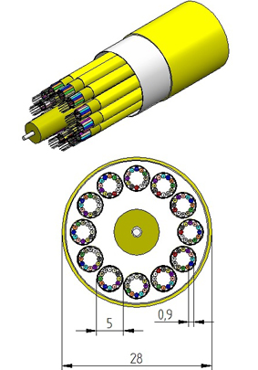 Cable f.o. sm nzd 10/125µ breakout lszh 12×1.6mm.