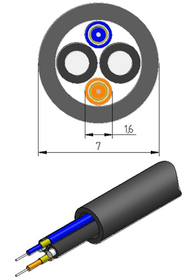 Cable f.o. sm std 9/125µ indoor/outdoor breakout black jacket/uv prot. 02×1.6mm.