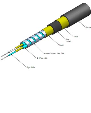 Cable f.o. mm 50/125µ indoor/outdoor breakout armored black jacket/uv prot. 02×1.6mm. om-4
