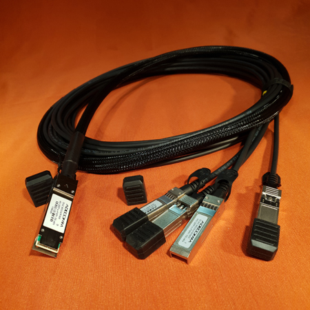 Direct attached copper – qsfp to 4xsfp+ – 40gb/s to 4x10gb/s – sff8436 & qsfp+ msa to sff-8431 & sfp+ msa – rohs – 28awg – 3 meters length
