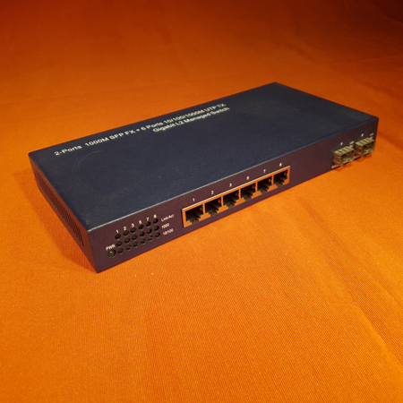 Mini switch (2x1000fx sfp ready port) + 6 tp 10/100/1000. qos, rstp, vlan, port trunking, bandwidth control, snmp, igmp snooping capability.