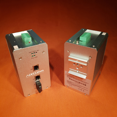 10/100/t to 100fx adecomm media converter industrial series, singlemode stand alone 20km, sc connector, din rail mount, 12?48vdc dual power input