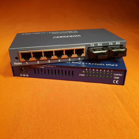 Mini switch (2x100fx mm2km) + 6tp port (v-lan) web managed