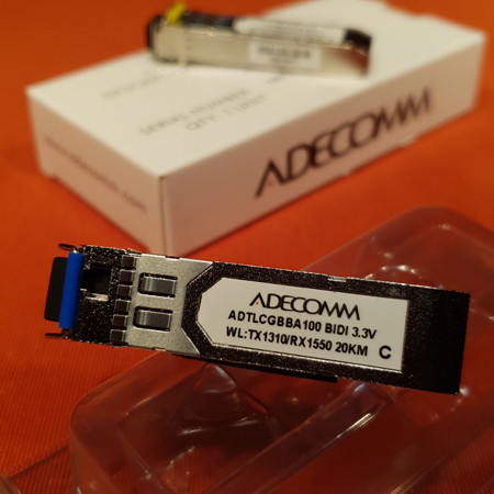 Adecomm transceiver gbic bidi type (sfp lc connector), distance: 3 km, wl: 1550 tx/1310 rx, sff-8472 (ddm), msa compliant