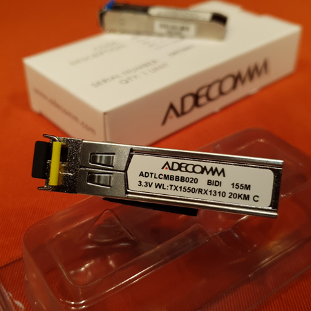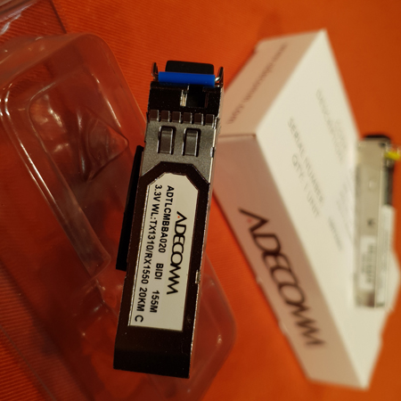 Adecomm transceiver 155 mbps bidi type (sfp lc connector), distance:20km, wl: 1310 tx/1550 rx, sff-8472 (ddm), msa compliant
