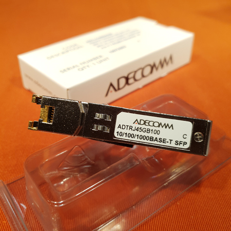Adecomm transceiver gbic (sfp rj-45 connector), distance:100mts., 802. 3-2002 / 802.3ab, 10/100/1000/mbps input support, sgmii interface.